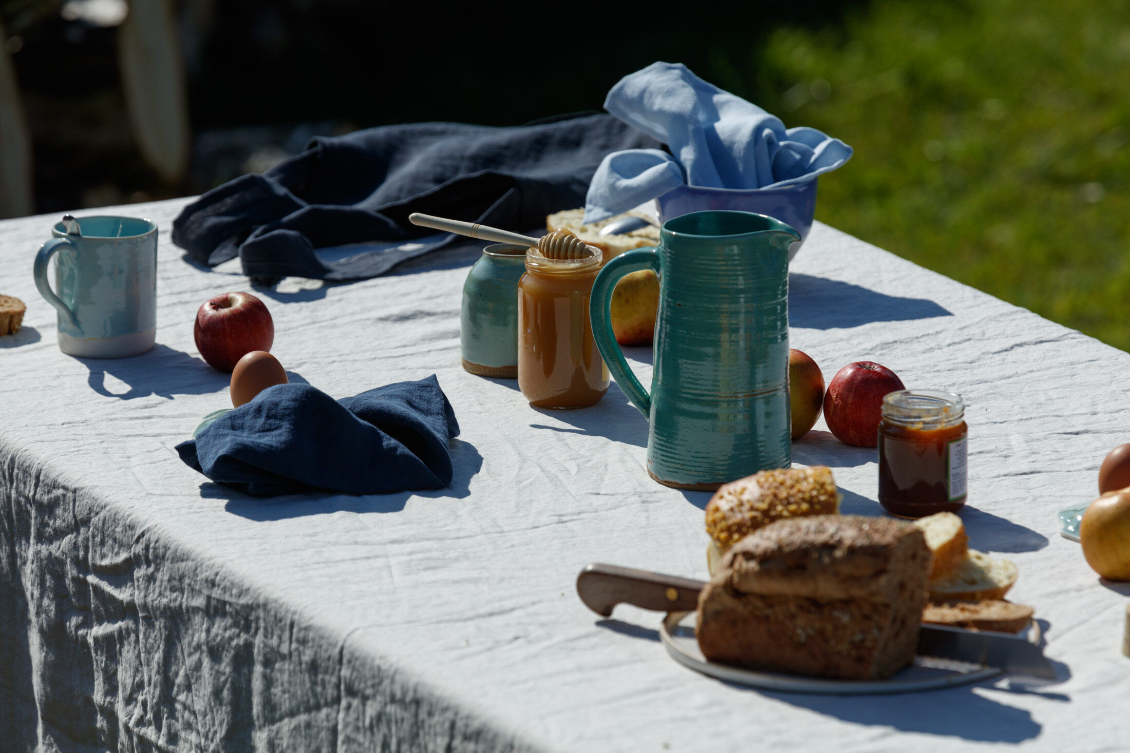 Superbe avec la nappe en lin miel .