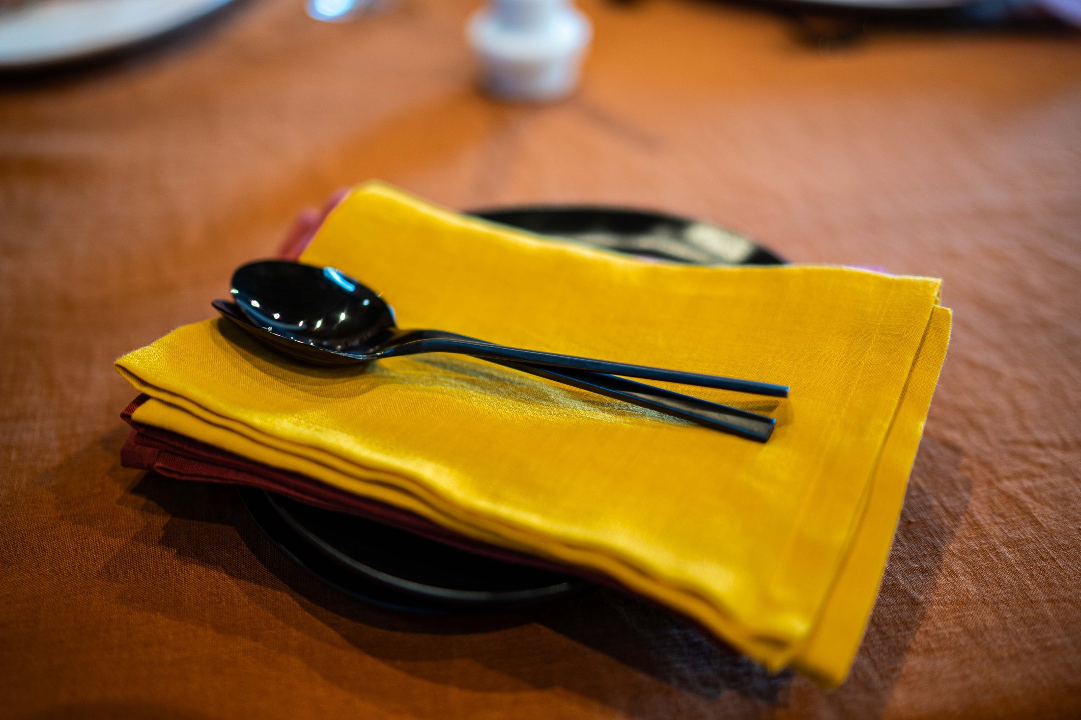 Ces serviettes en lin jaune safran sont lumineuses et apportent une touche de gaieté à ma table.