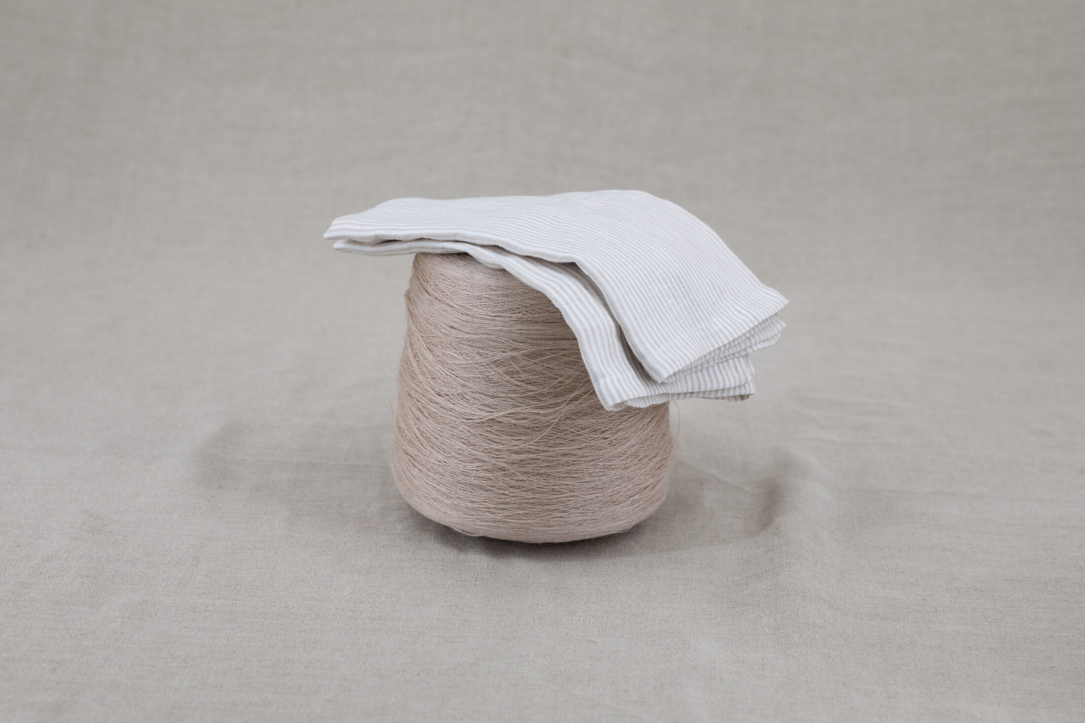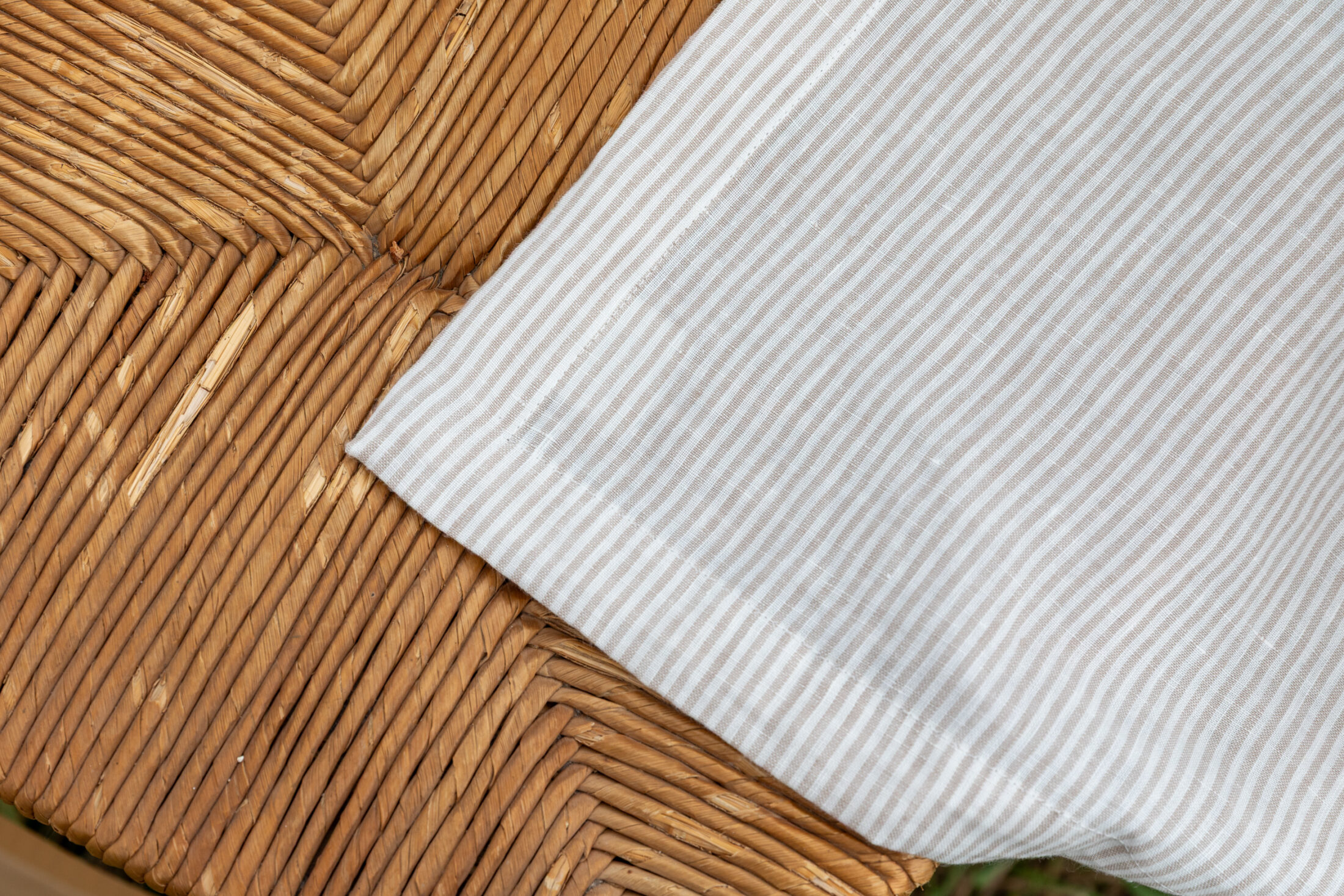 Les fines rayures subtiles, alliant pureté du blanc et chaleur de la couleur naturelle du lin, créent un motif élégant et discret.
