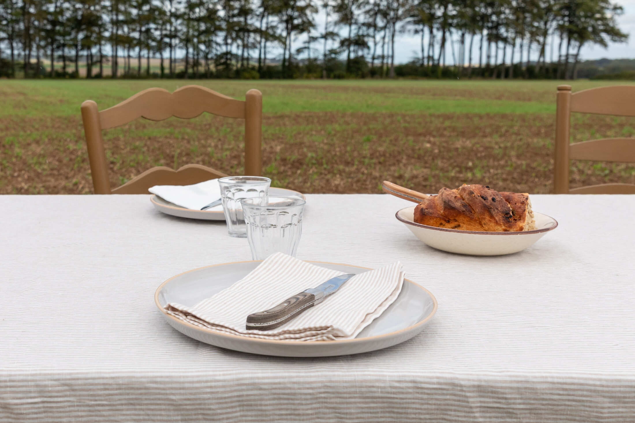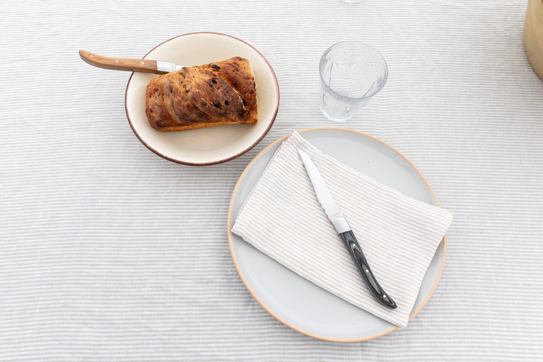 Les serviettes à rayures sont assorties à notre nappe à rayures. Vous pouvez également les marier avec des teintes unies de notre collection. Le coup de coeur de l'équipe : les serviettes à rayures naturelle avec la nappe en lin lavé caramel.
