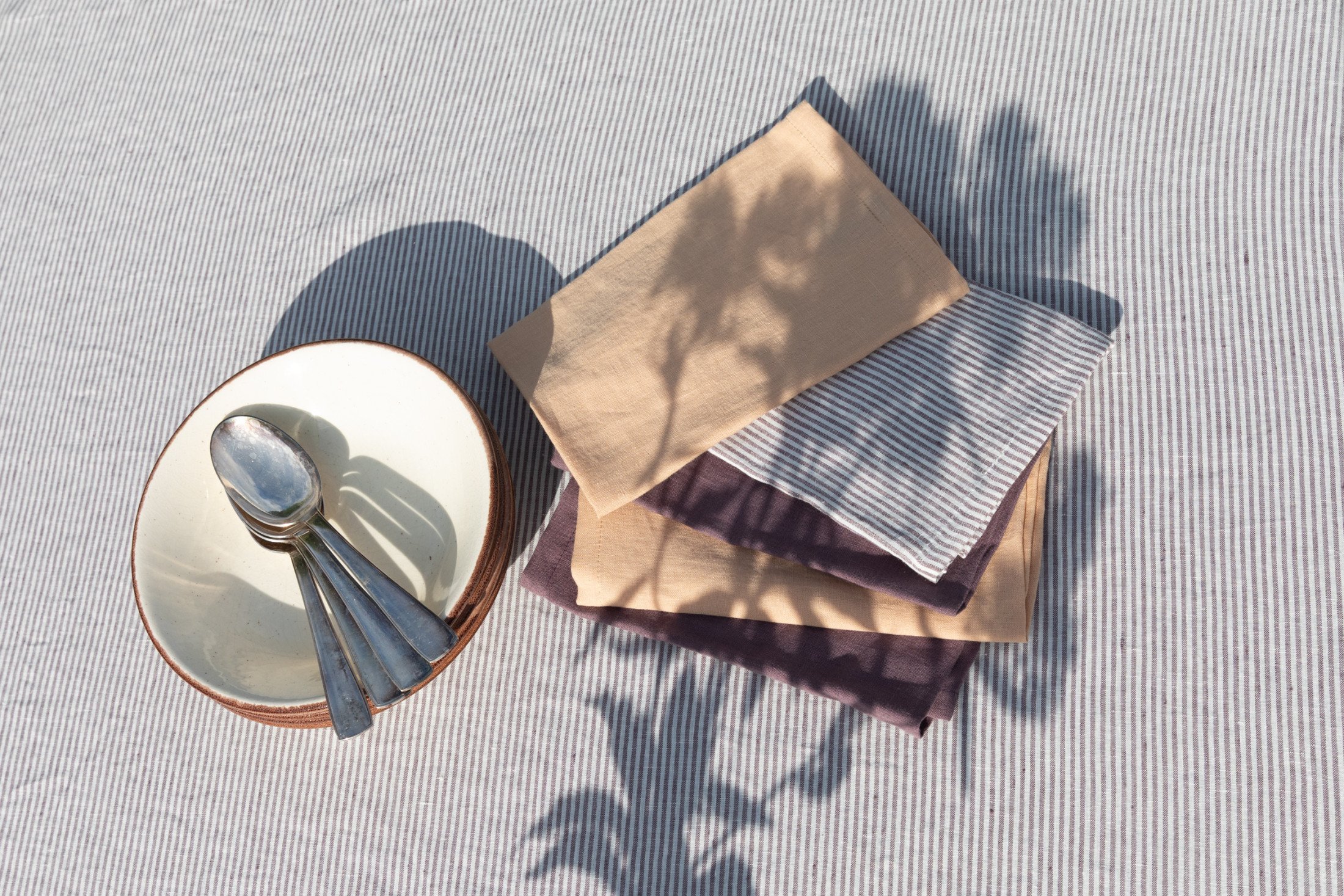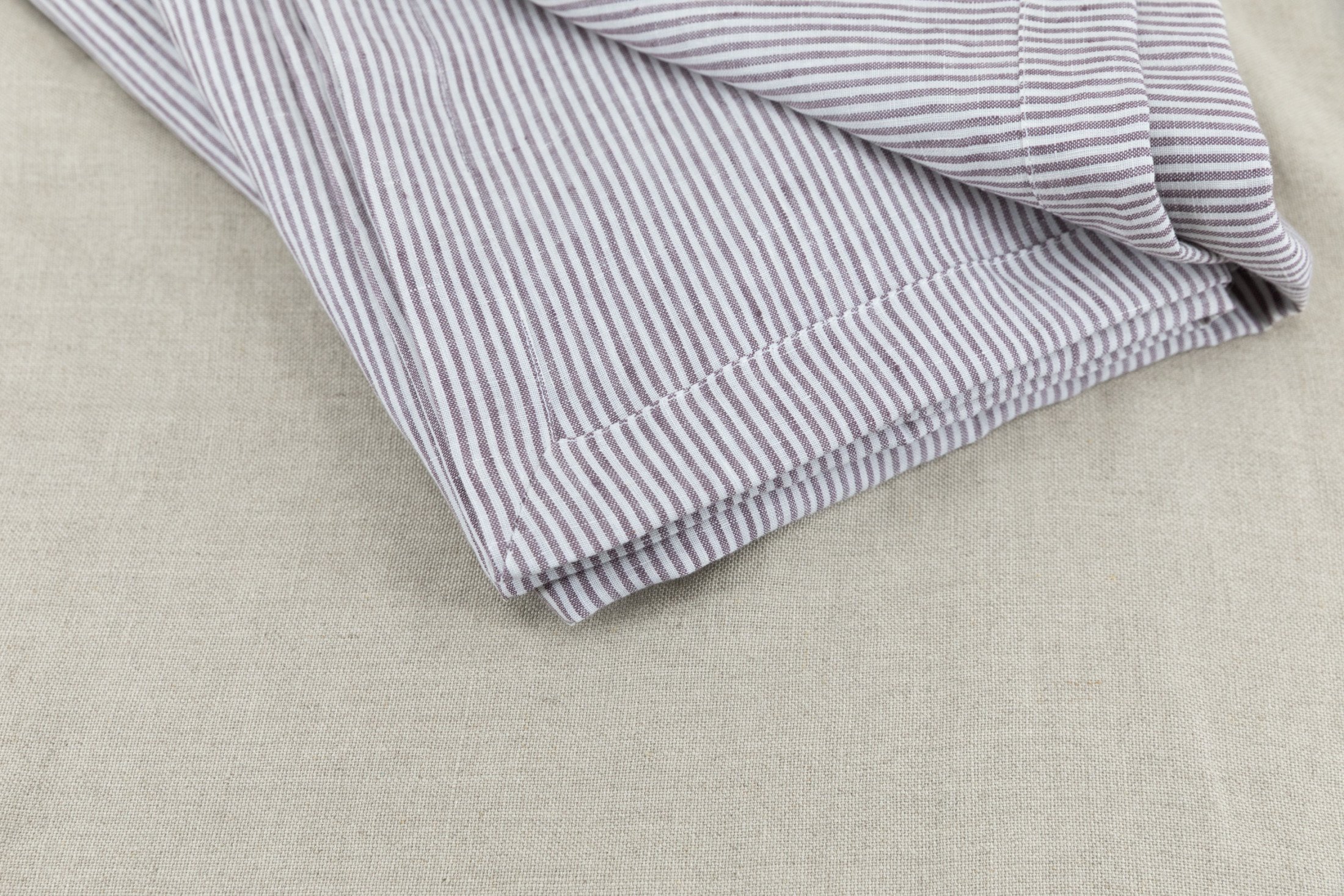 Tissées dans un lin naturel d’une grande qualité, ces serviettes de table allient sobriété et raffinement avec un jeu de rayures délicates, alternance de Blanc Craie et de Prune. Le contraste subtil entre la pureté du blanc et la profondeur du prune confère une élégance discrète, à la fois contemporaine et chaleureuse.