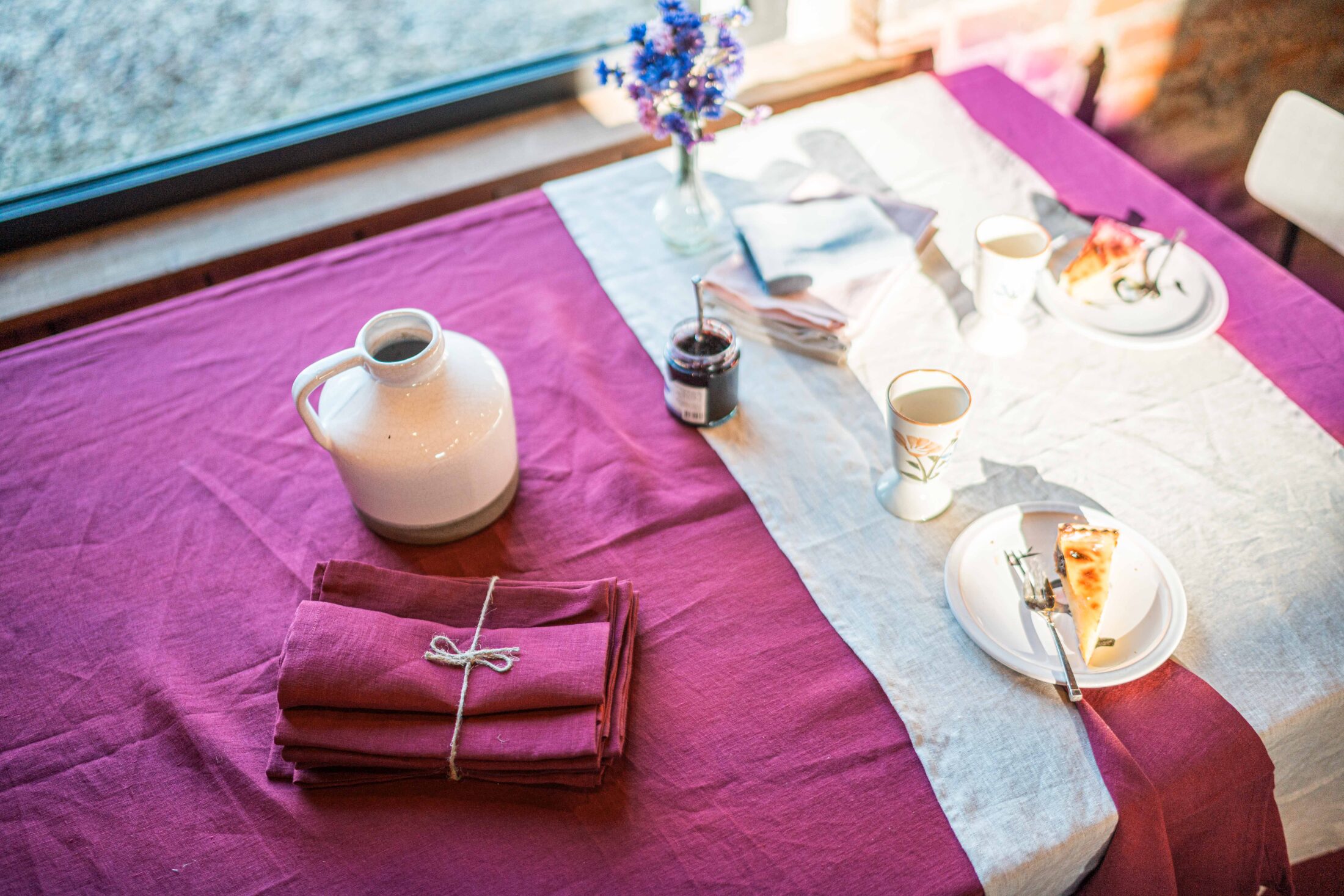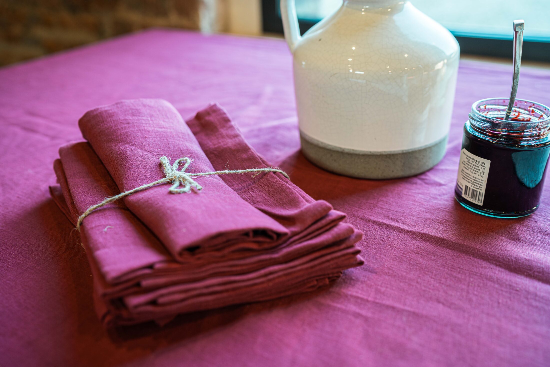 Ces 4 serviettes de table en lin lavé rose bruyère apporteront une note pétillante à votre table.