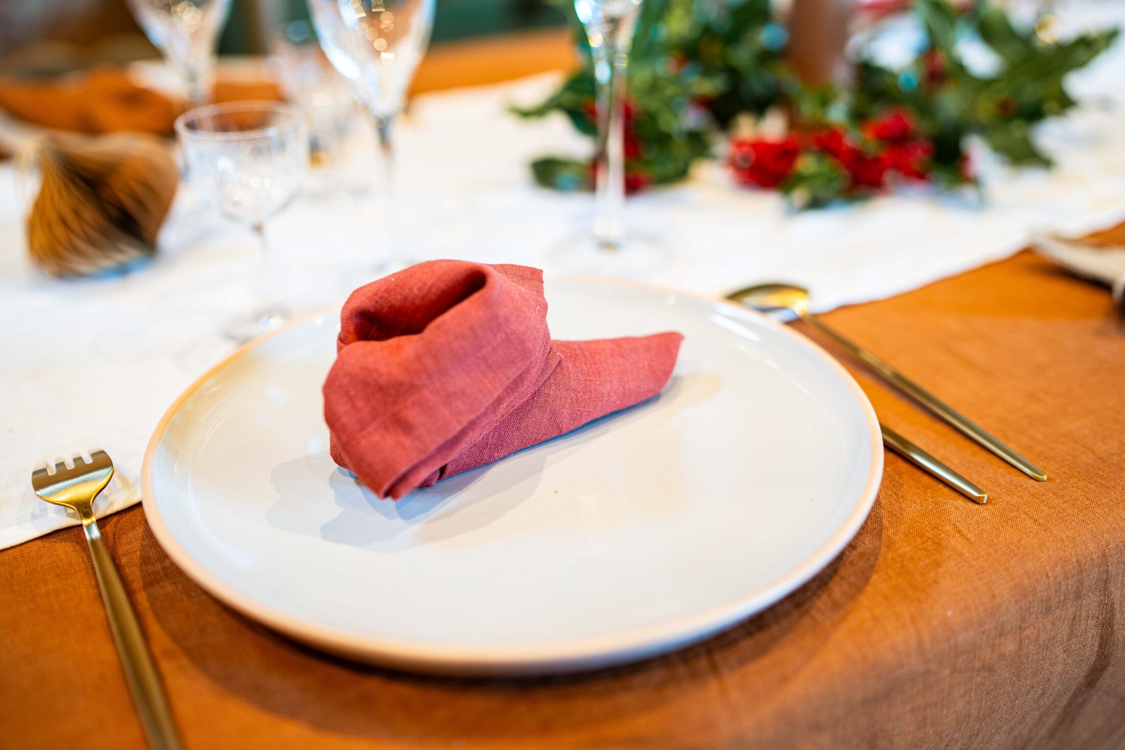 Ces serviettes de table en lin sont d'une douceur incroyable, et la couleur rouge figue est très raffinée.