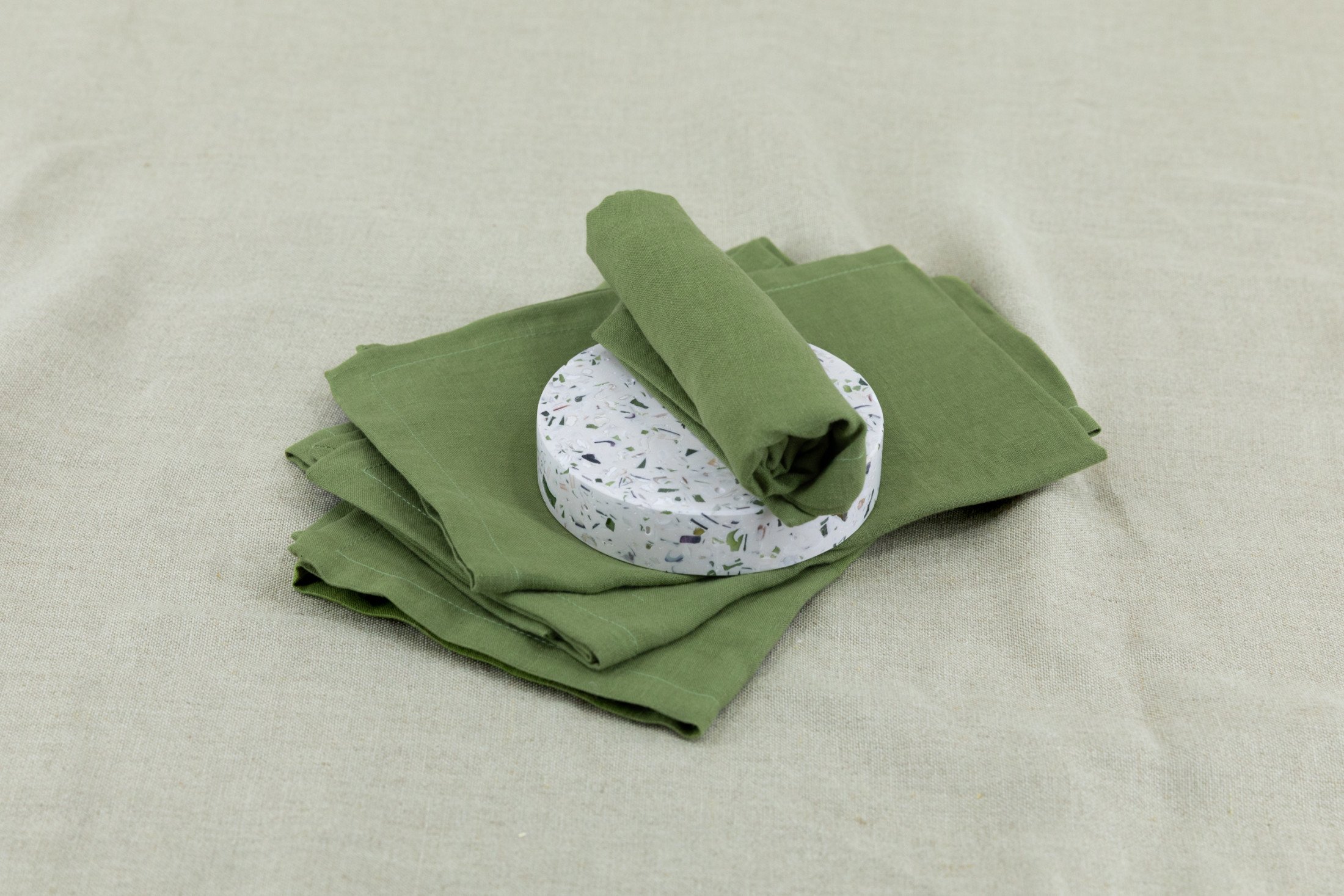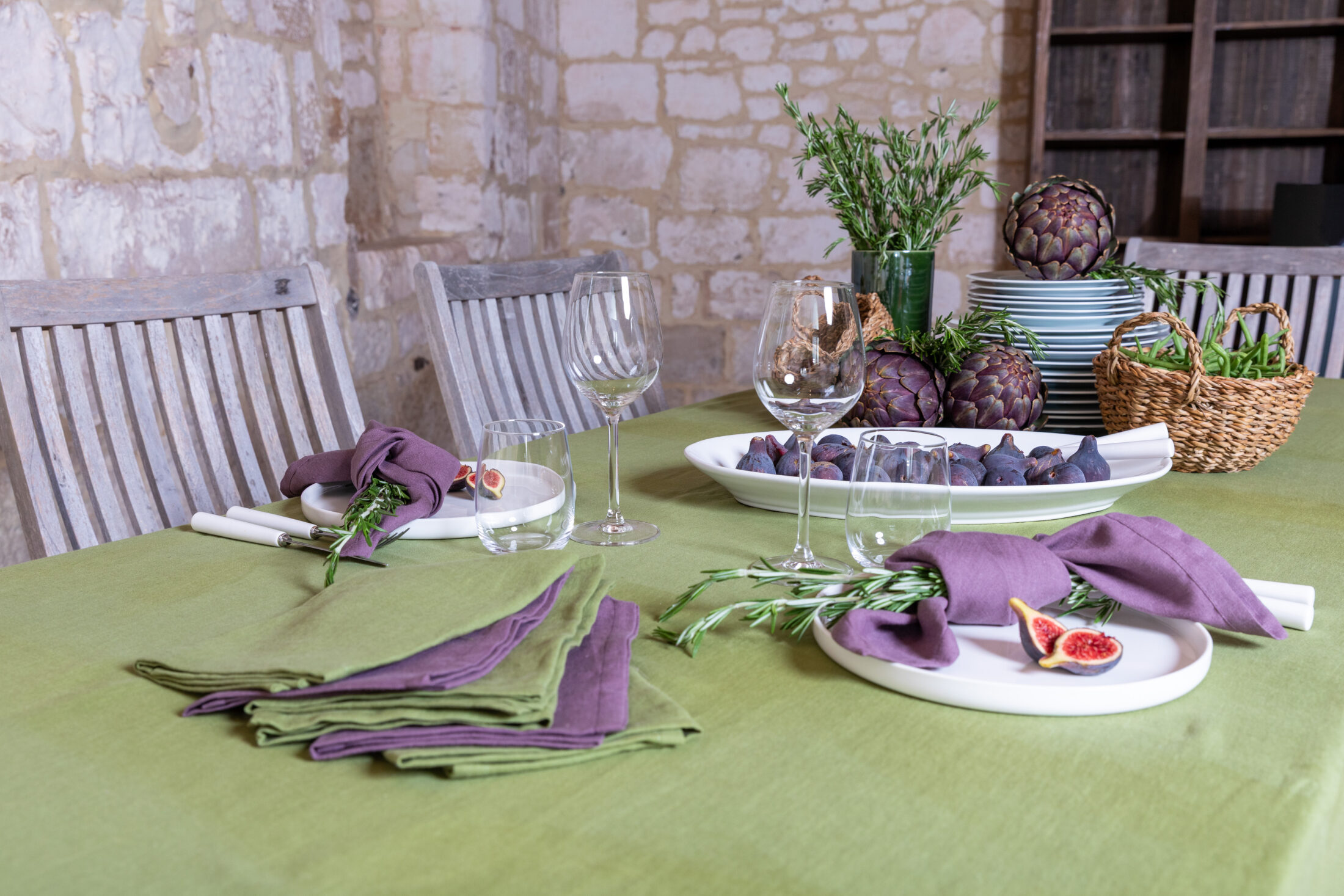 Nos serviettes de table en lin Vert Olive sont une invitation à la douceur, à la nature et à l’art de recevoir en toute simplicité.