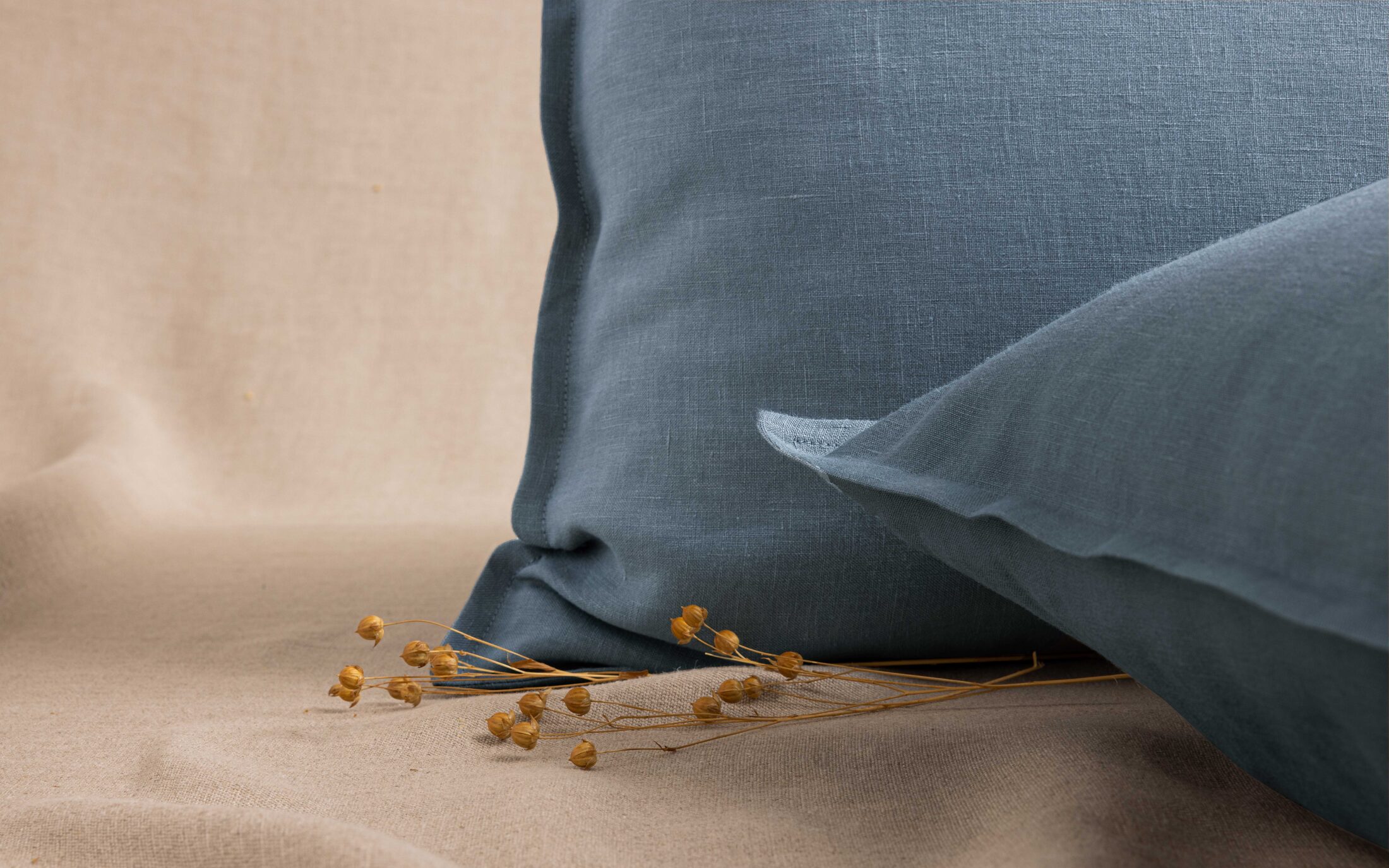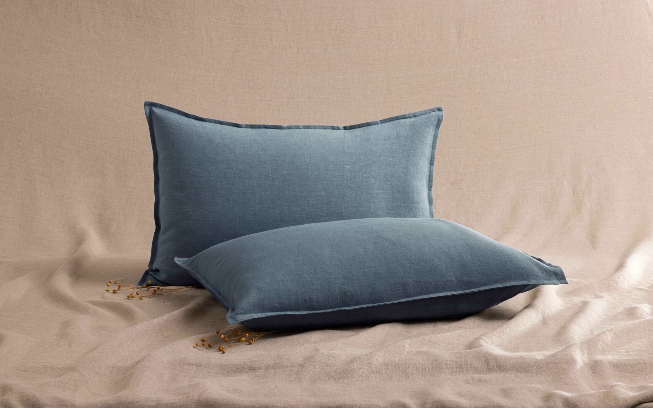Taie d'Oreiller en Lin Lavé Bleu Ardoise