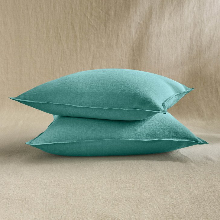 Taie d’Oreiller en Lin Lavé Bleu Lagon