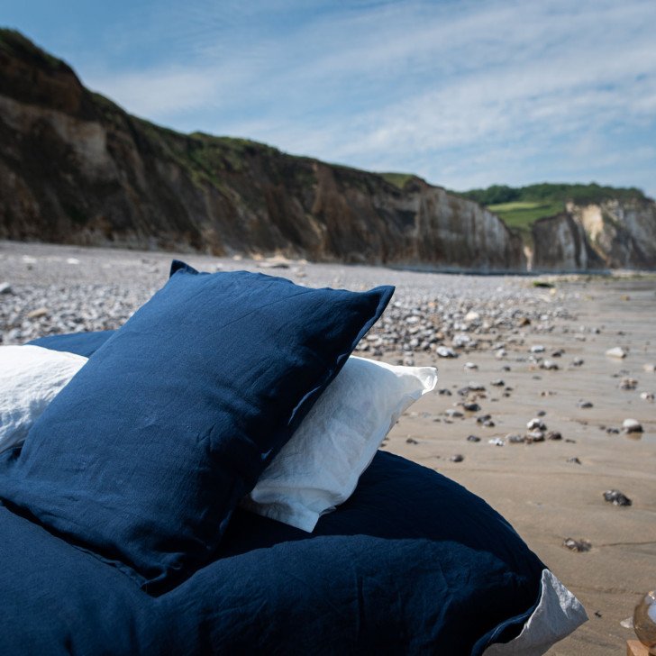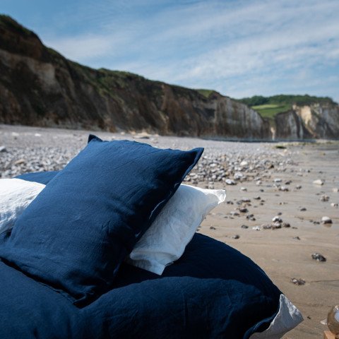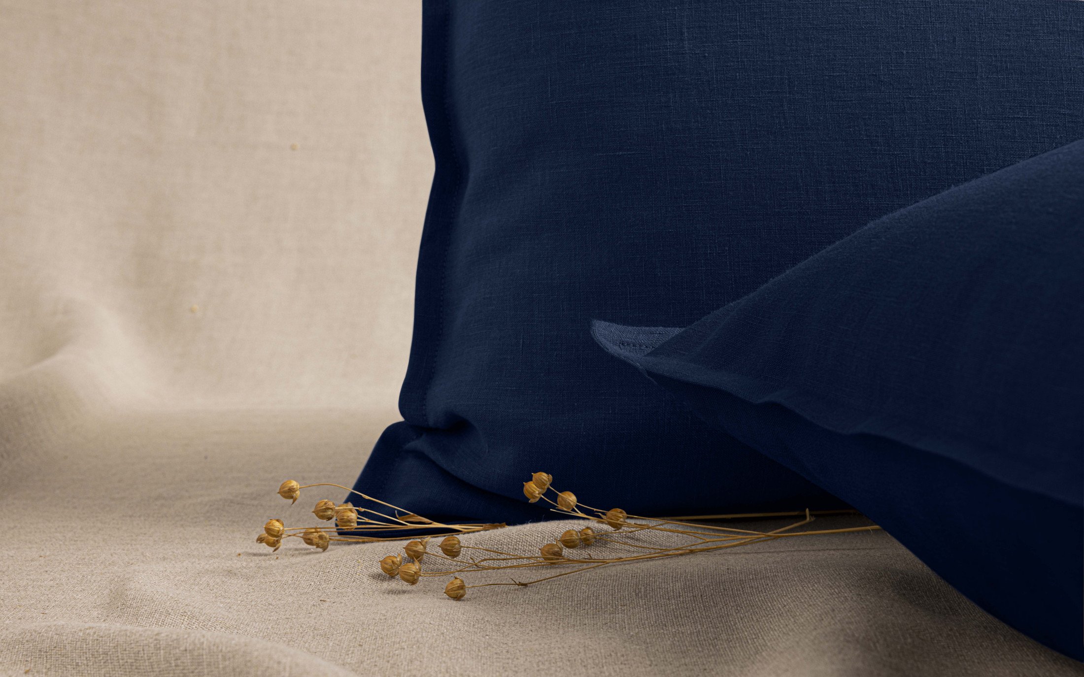 Taie d'Oreiller en Lin Lavé Bleu Nuit