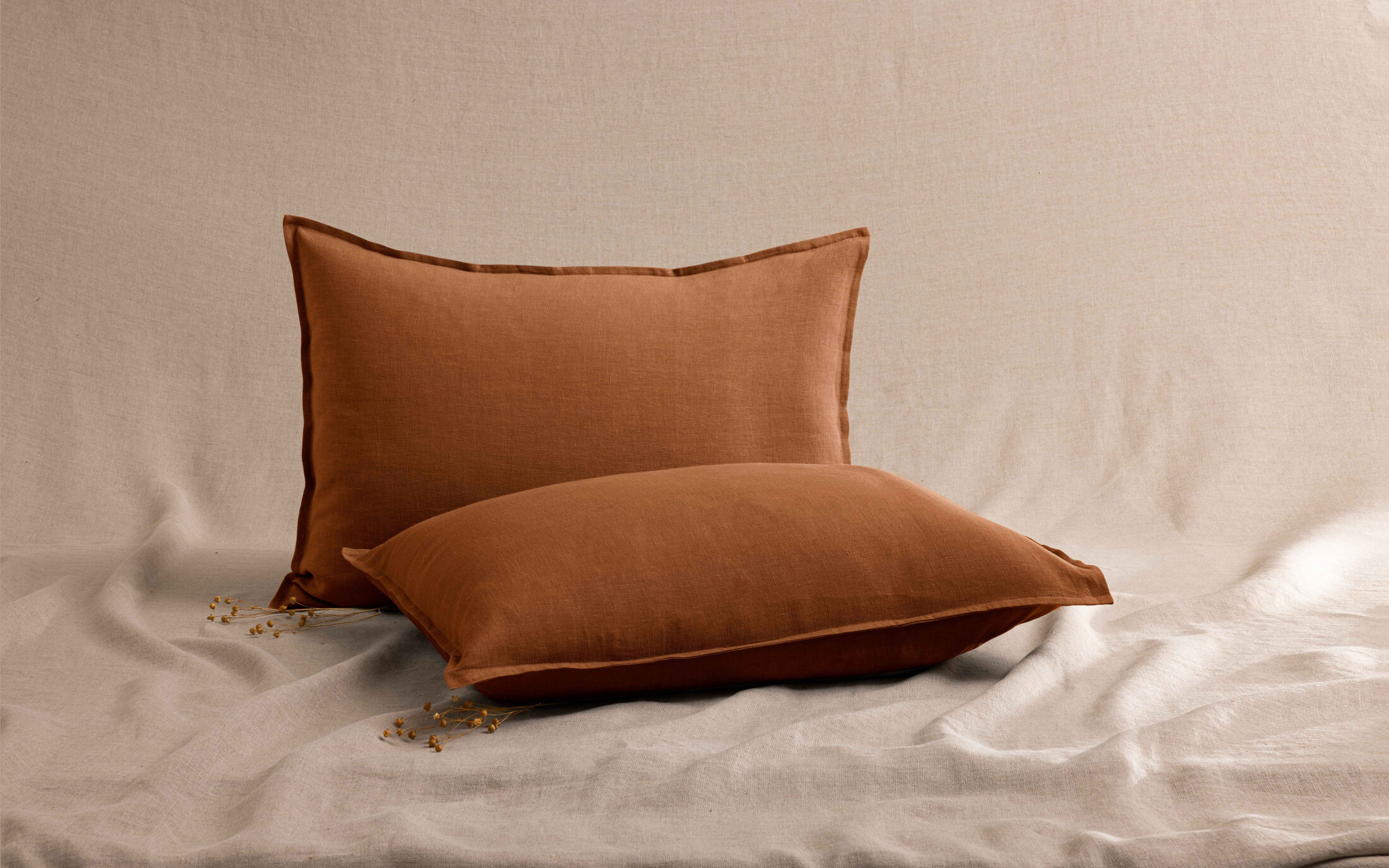 Avec une taie d’oreiller en Lin Lavé Caramel votre chambre devient à la fois chaleureuse et réconfortante.