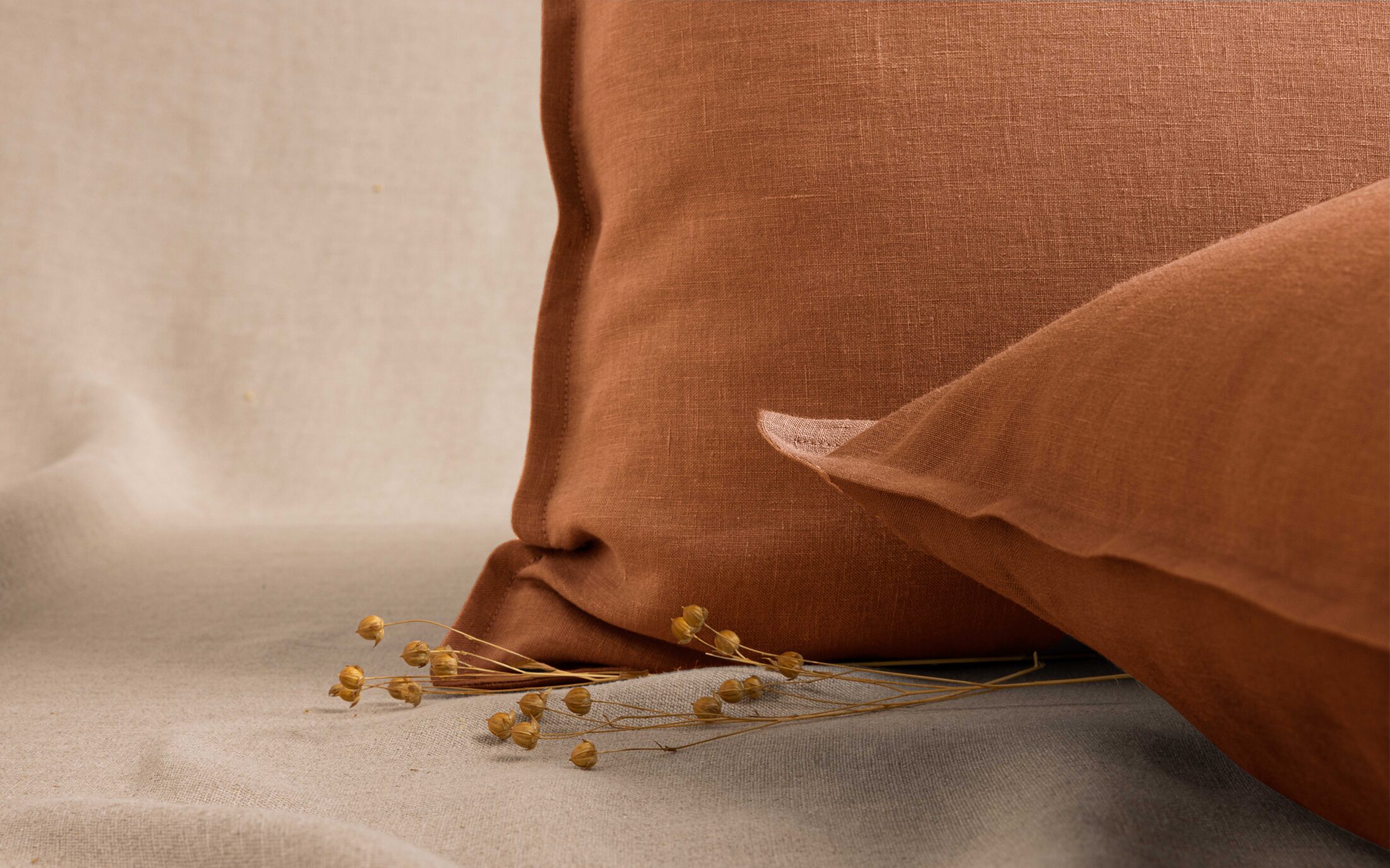 Cette taie d'oreiller en lin est douce contre la peau et la couleur caramel est très apaisante.