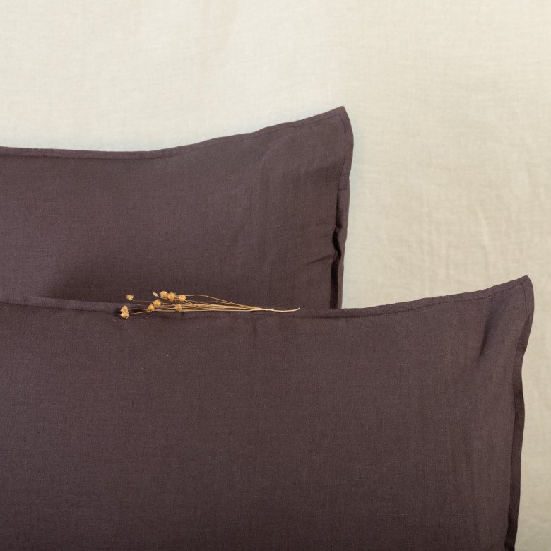 Taie d'oreiller en lin lavé Châtaigne