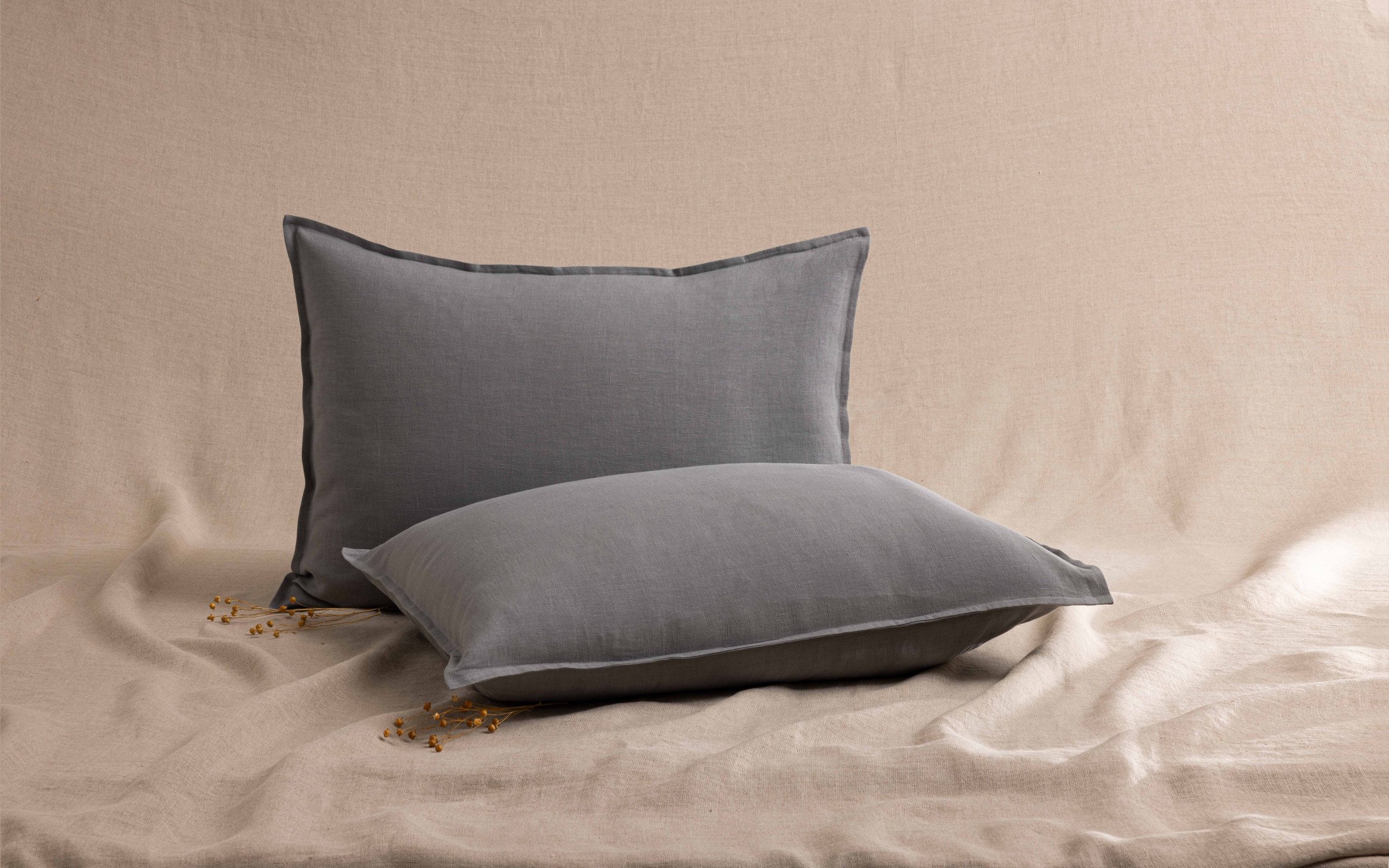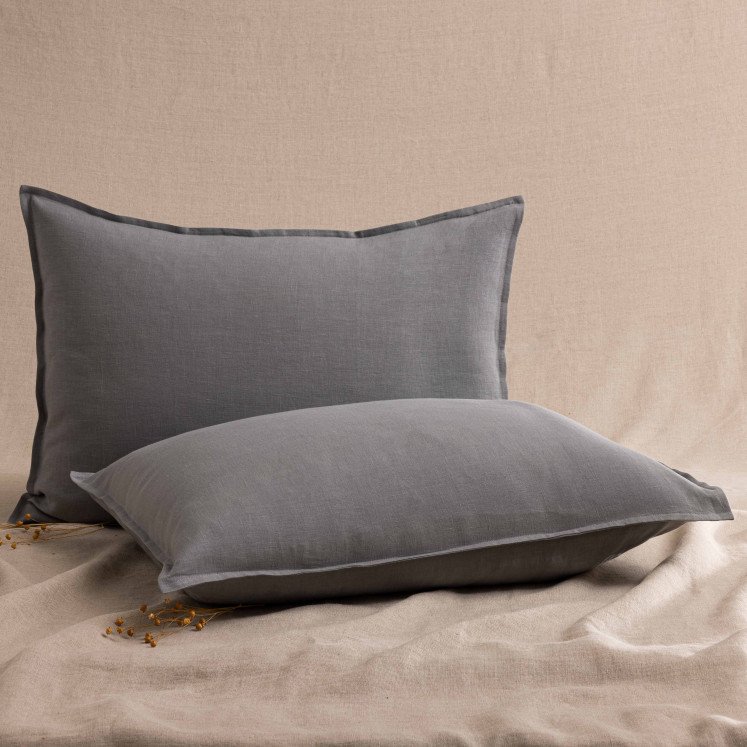 Taie d'Oreiller en Lin Lavé Gris Brume