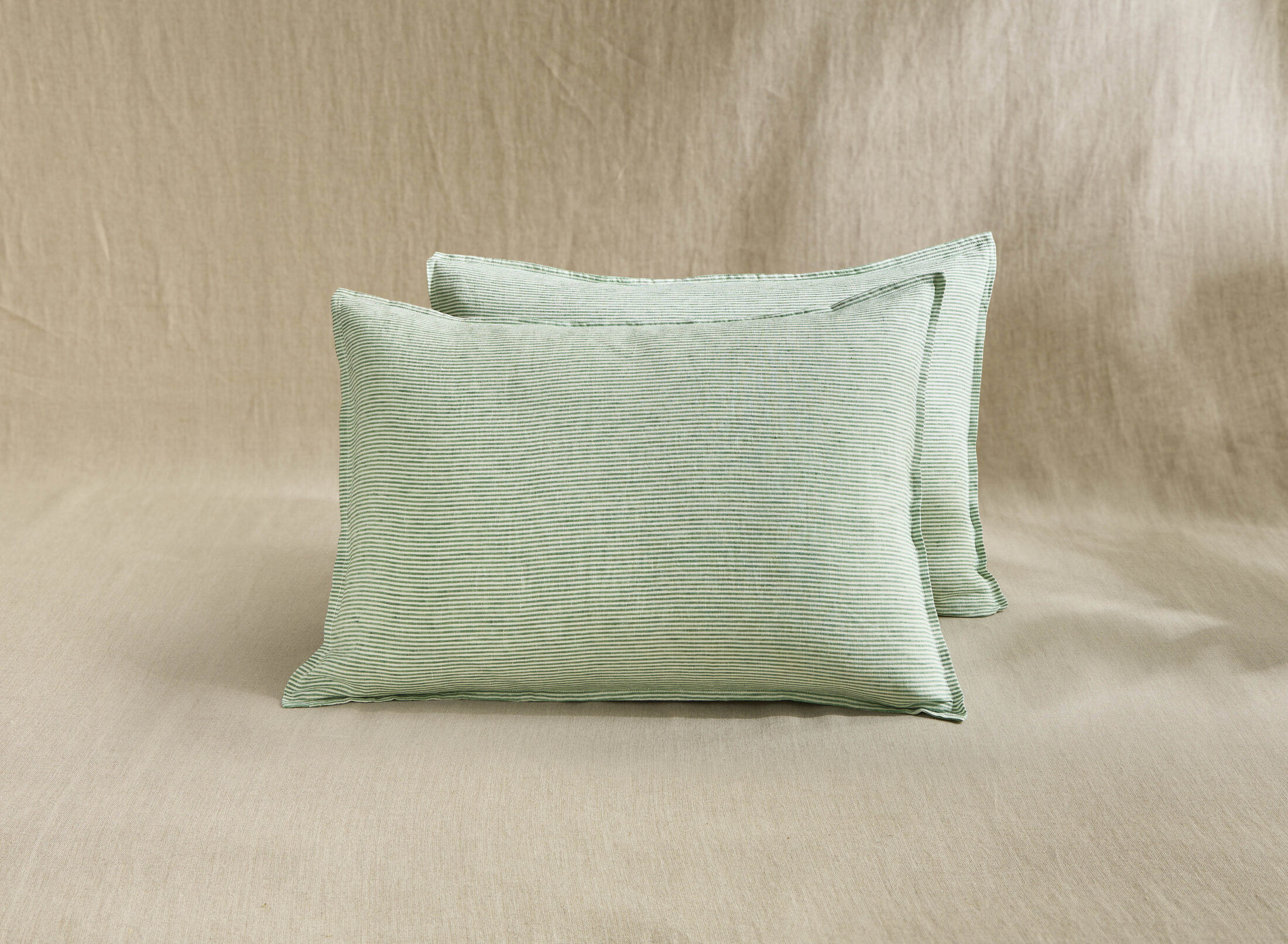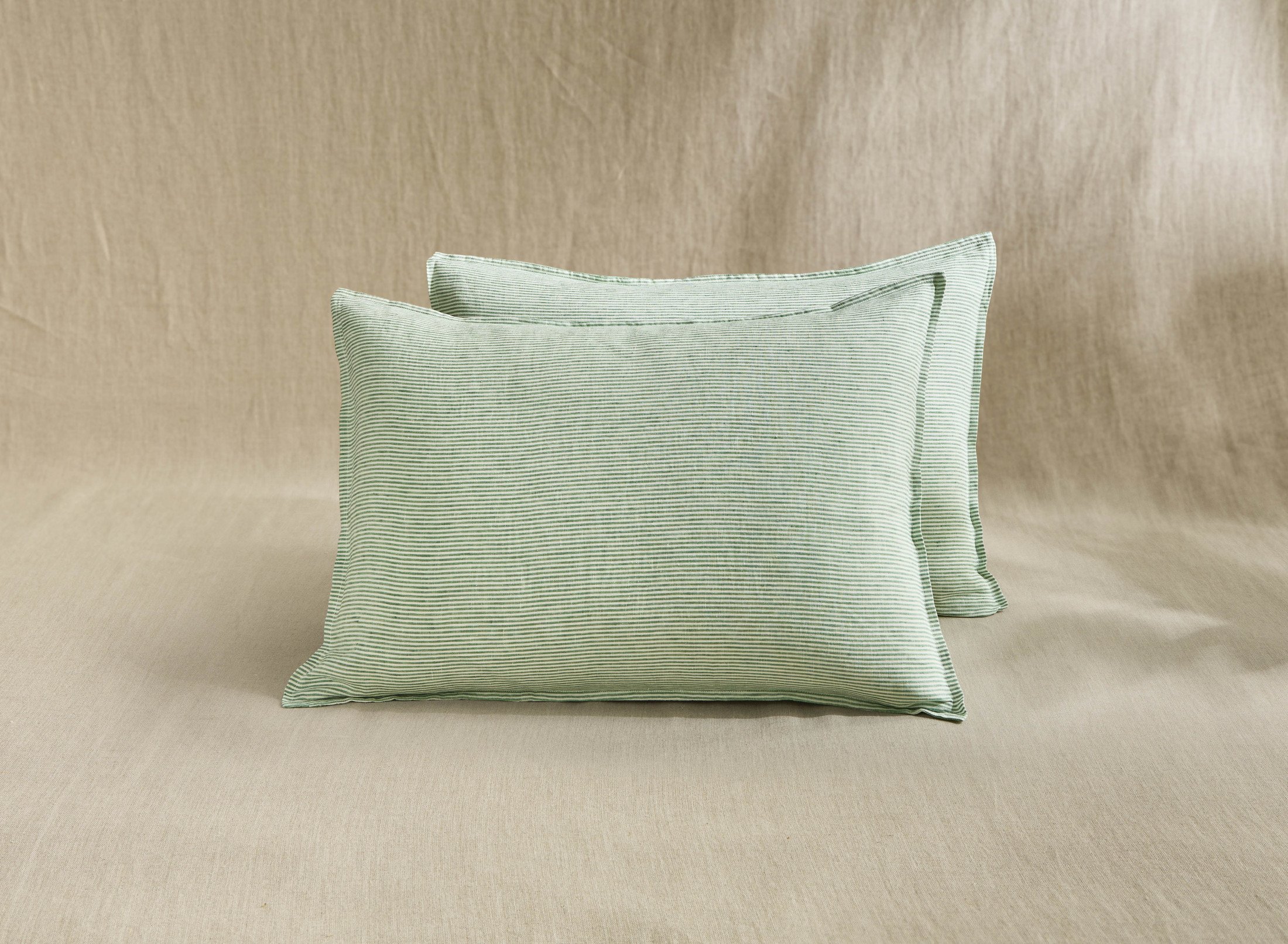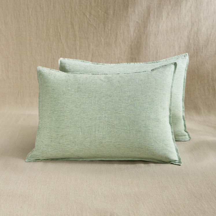 Taie d’Oreiller en Lin Lavé Rayure Sauge