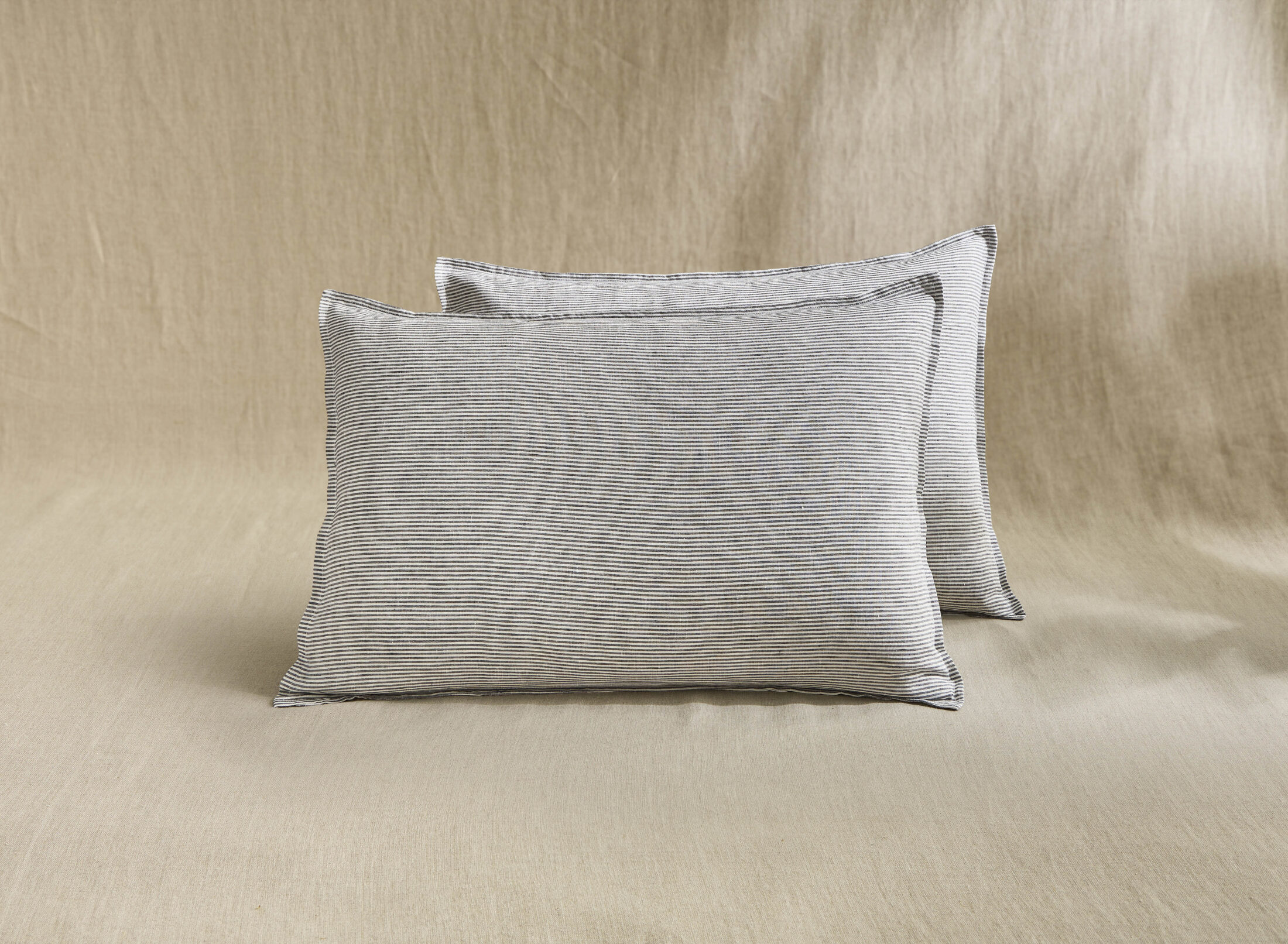 Taie d’Oreiller en Lin Lavé Rayure Silex