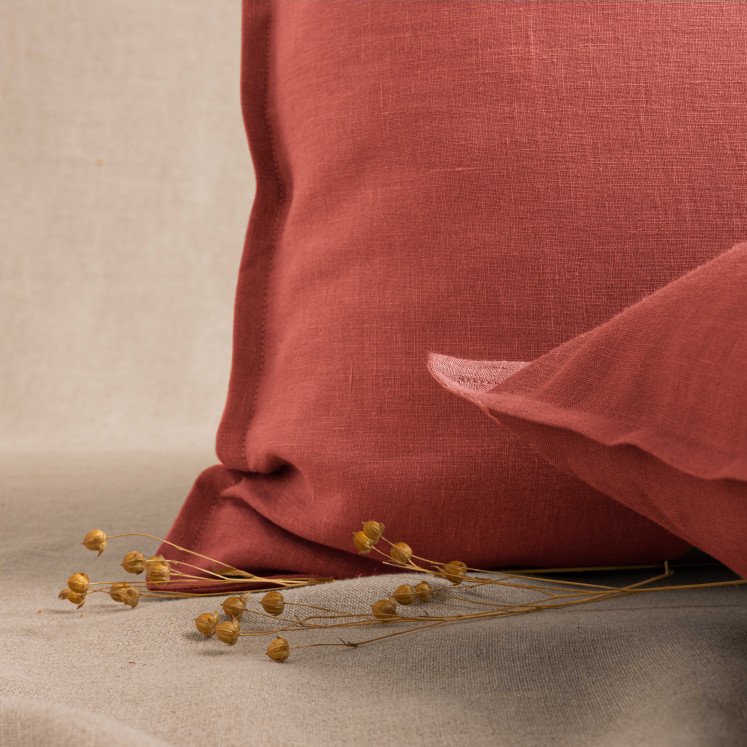 Taie d'Oreiller en Lin Lavé Rouge Figue