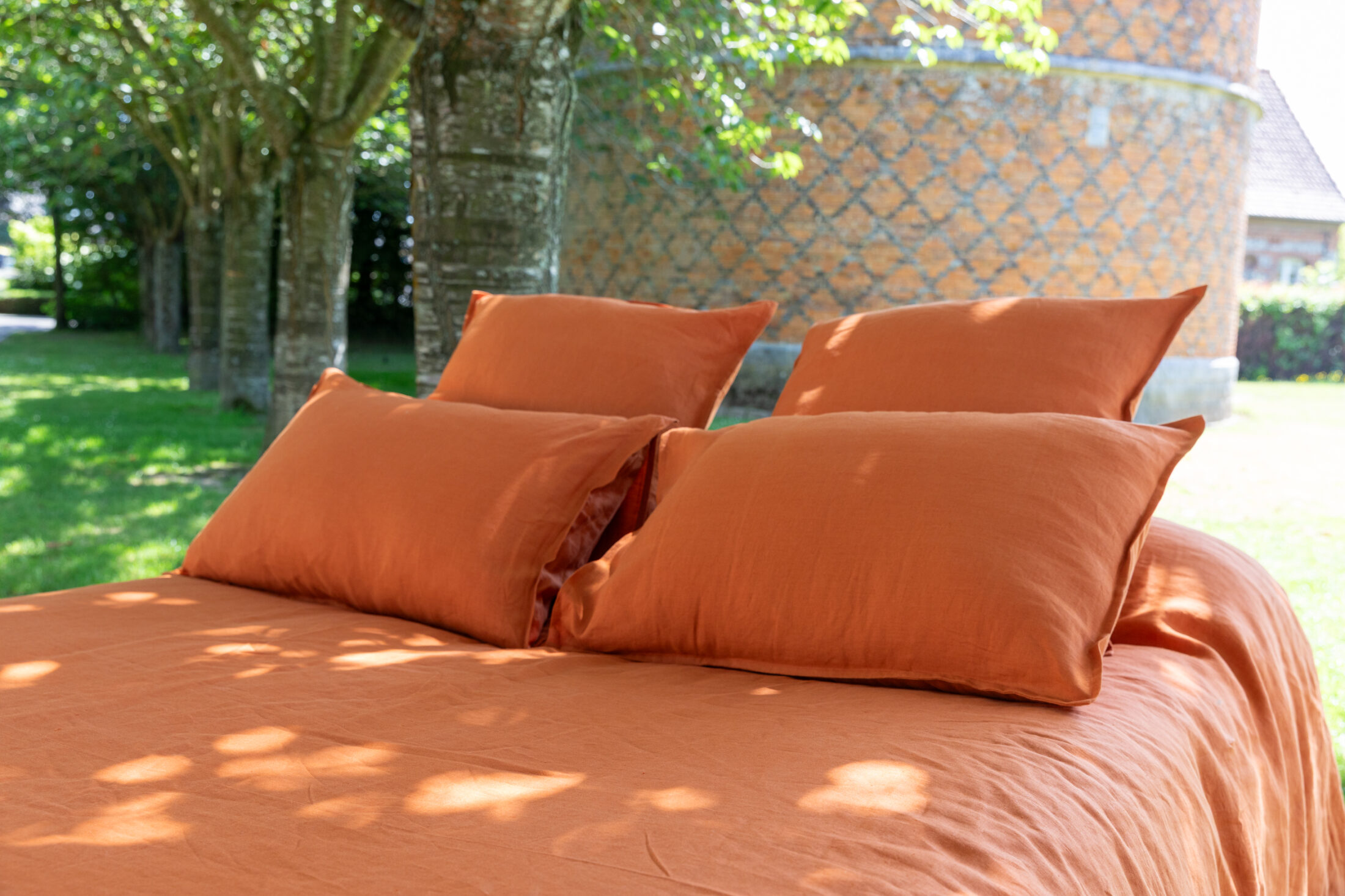 Complétez votre parure de lit avec une housse de couette ou un drap-housse couleur Tomette, pour une chambre pleine de chaleur et de sérénité.