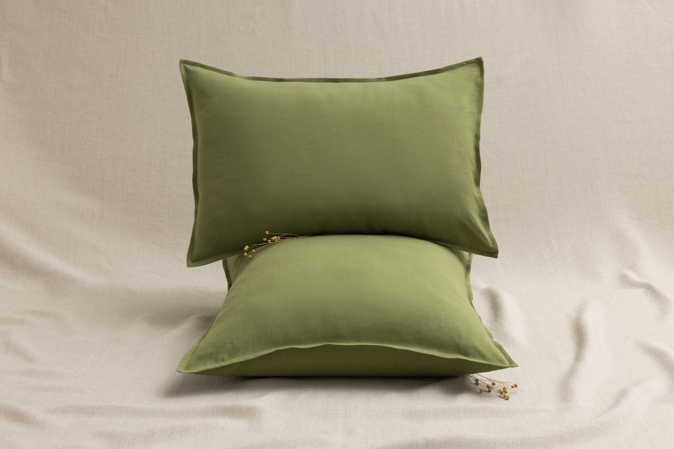 Associez-les à notre housse de couette Vert Olive et à nos draps en lin lavé pour une harmonie parfaite et un confort inégalé.