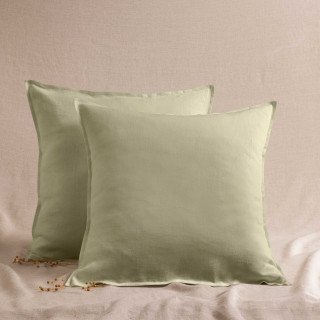 Taie d'Oreiller en Lin Lavé Vert Tilleul