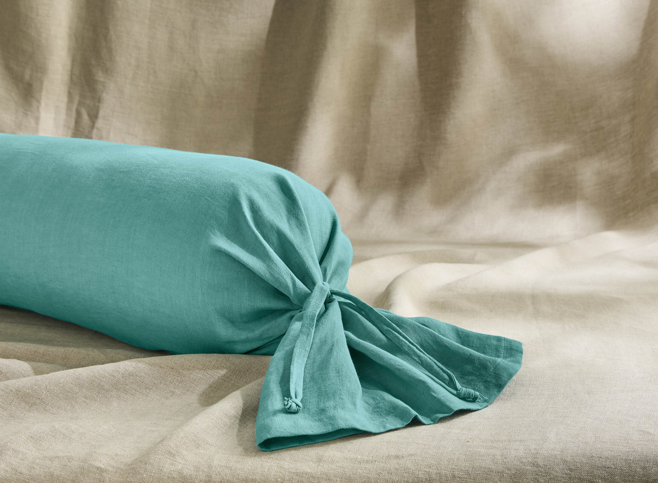 Taie de Traversin en Lin Lavé Bleu Lagon