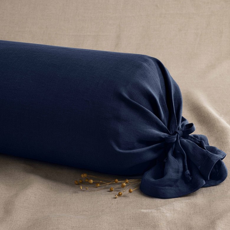 Taie de Traversin en Lin Lavé Bleu Nuit