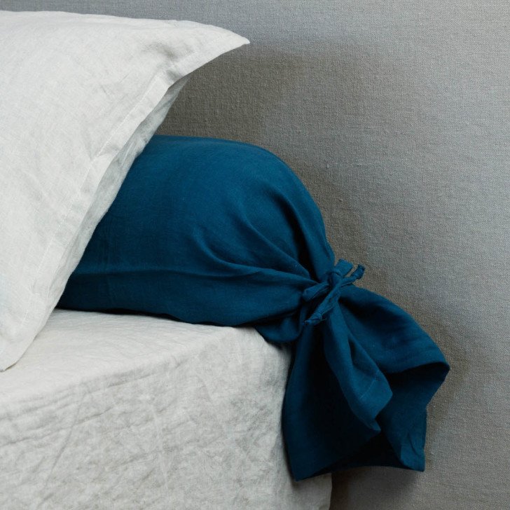 Teintée d'un bleu prusse, découvrez notre taie de traversin en lin lavé. Élégante, cette taie pourra s'associer avec de nombreuses couleurs comme le blanc craie, ou encore le gris galet pour former des parures délicates.