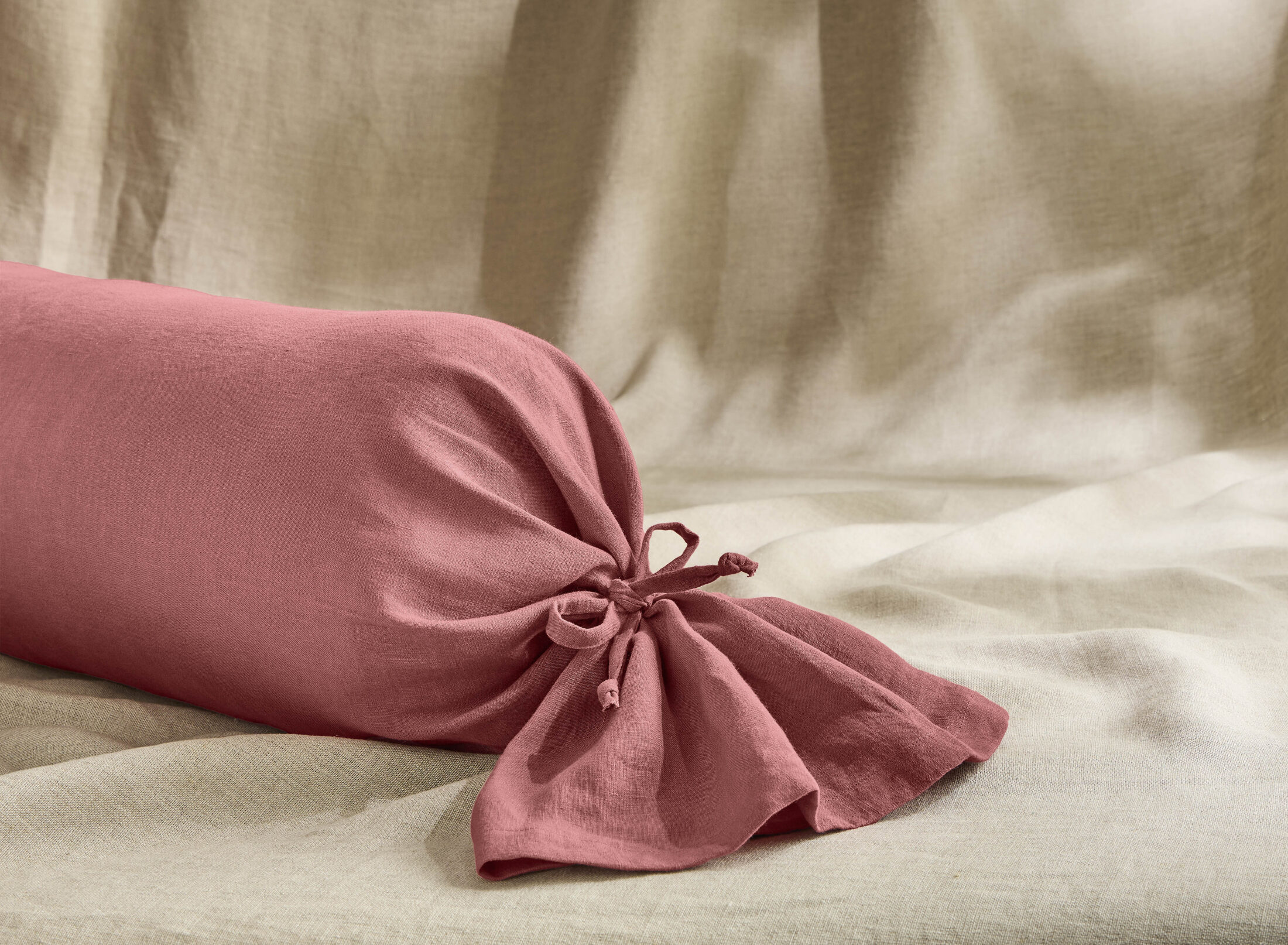 Taie de Traversin en Lin Lavé Bois de Rose