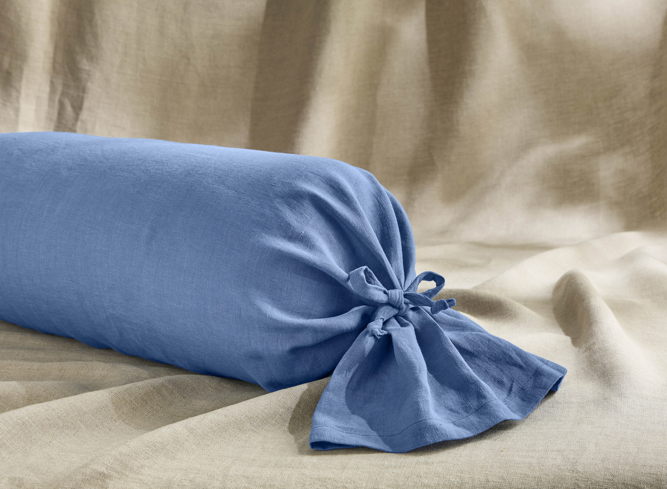Taie de Traversin en Lin Lavé Fleur Bleue