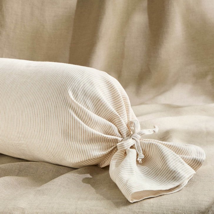Taie de Traversin en Lin Lavé Rayure Naturel