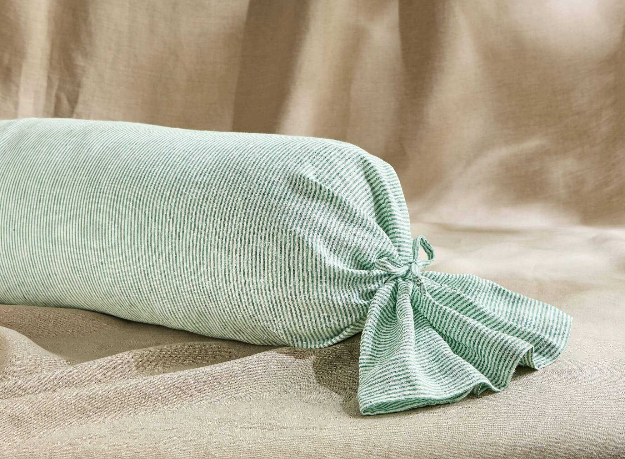 Taie de Traversin en Lin Lavé Rayure Sauge