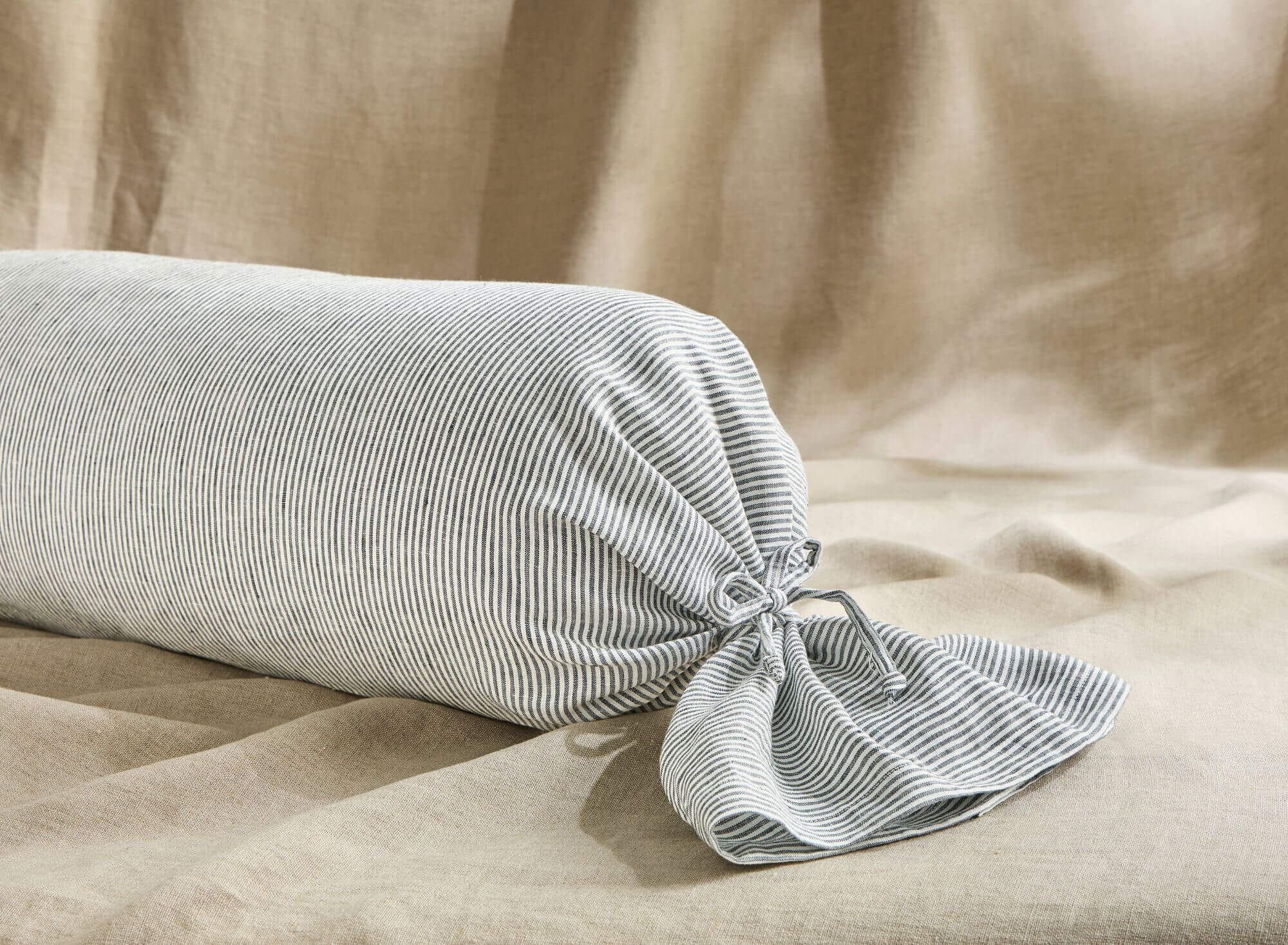 Taie de Traversin en Lin Lavé Rayure Silex