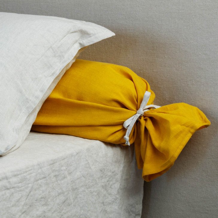 Taie de Traversin en Lin Lavé Safran