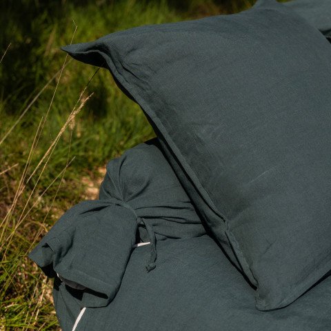 Le lin est une fibre écologique qui n'a pas fini de vous étonner. Il est à la fois hypoallergénique et antibactérien. La taie de traversin en lin lavé vert forêt régule aussi naturellement votre température corporelle. Le bénéfice majeur ? Votre sommeil est plus profond et réparateur, et ce, en toutes saisons.