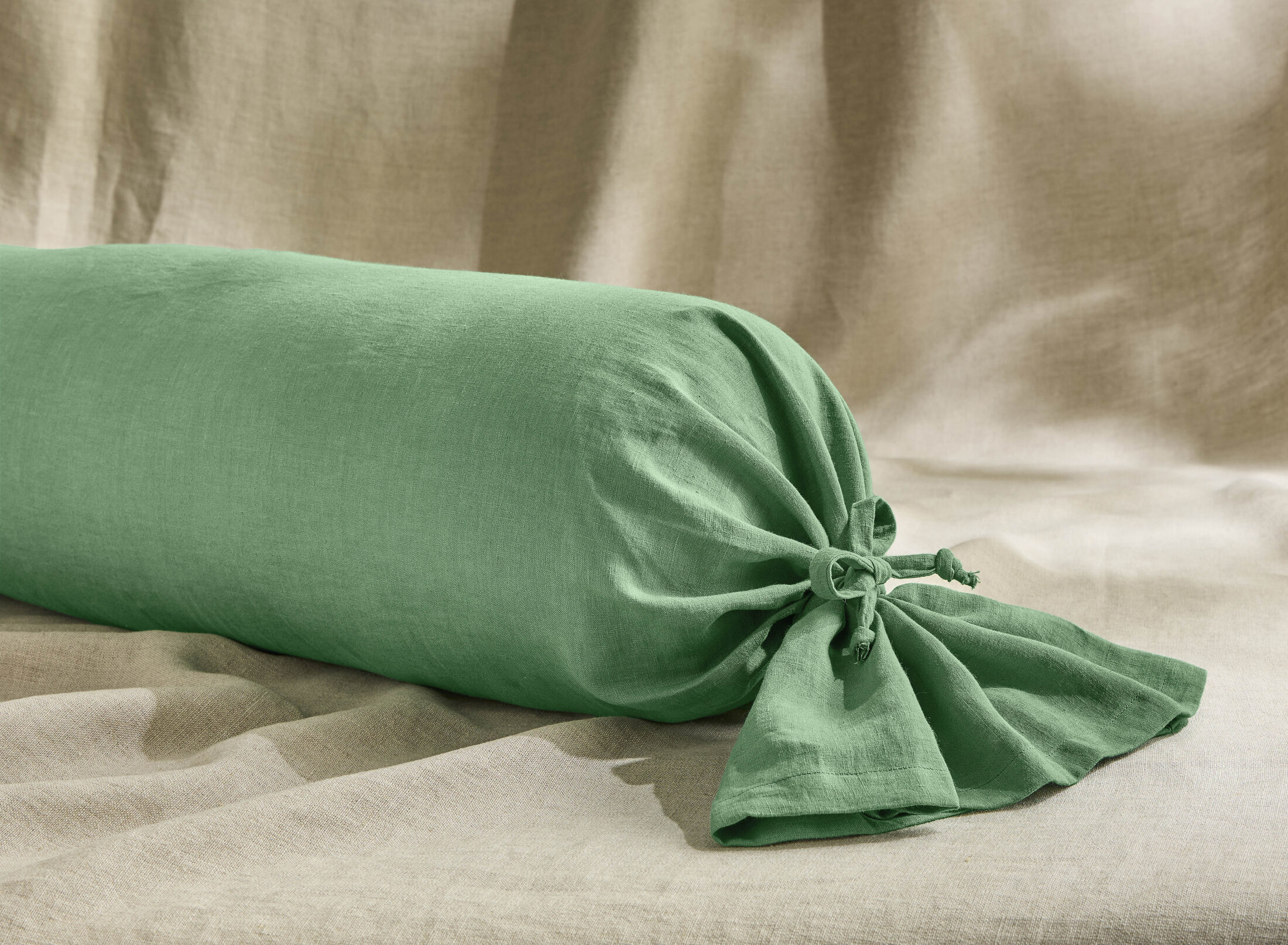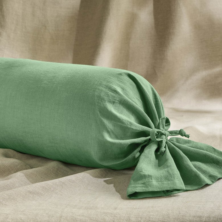 Taie de Traversin en Lin Lavé Vert Sauge