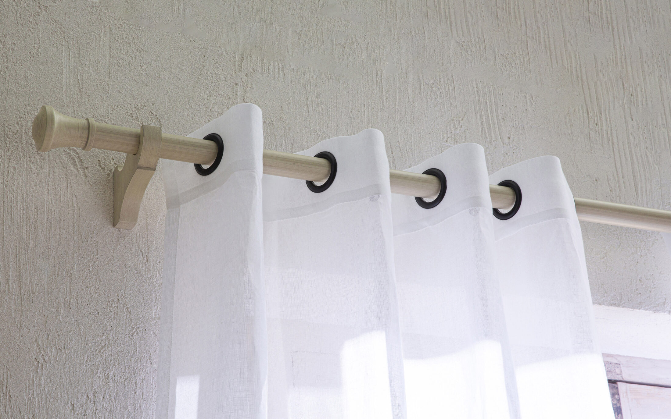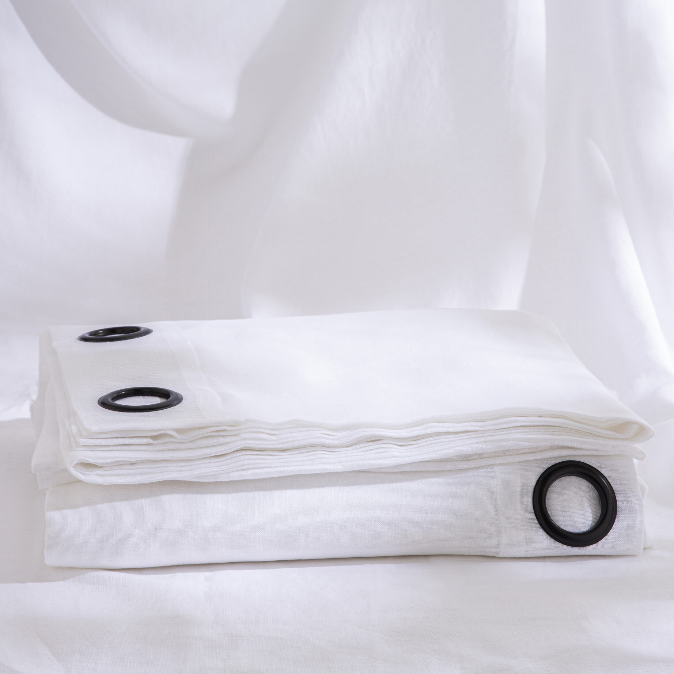 Le voilage en lin présenté possède une finition œillets de coloris noir mat, mais vous pouvez choisir votre coloris d’œillets.