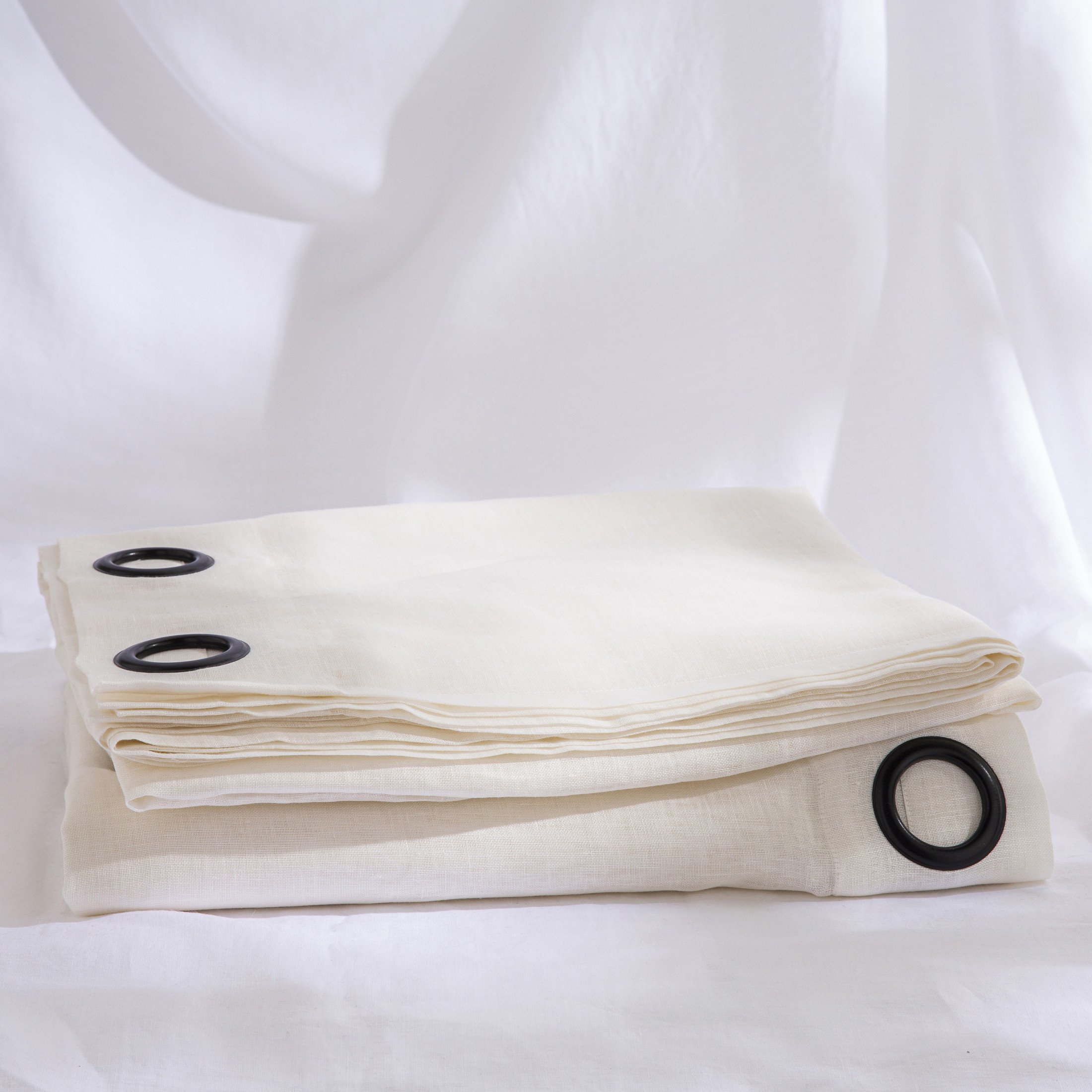 Le voilage en lin présenté possède une finition œillets de coloris noir mat, mais vous pouvez choisir votre coloris d’œillets.