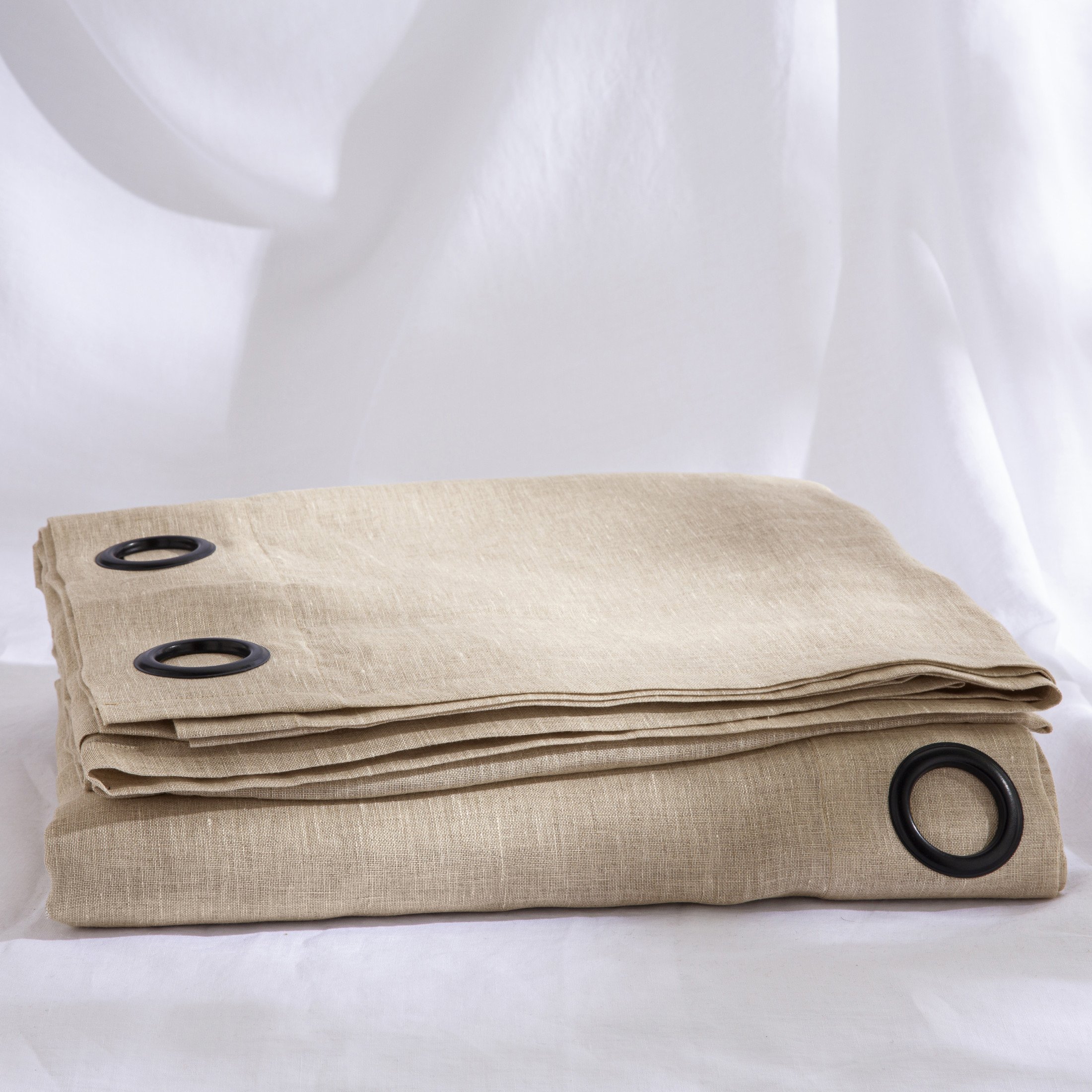 Le voilage en lin présenté possède une finition œillets de coloris noir mat, mais vous pouvez choisir votre coloris d’œillets.